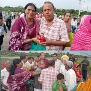 जवाई नदी में सभी 08 पालकियों को टेबलों पर स्थापित कर साथ आये सभी पंडितों ने नदी में बहते पानी से विधि विधान पुर्वक देवताओं की मूर्तियों को स्नान करवाकर पुनः पालकियों में विराजित किया।इस दौरान पंडितों ने देवताओं की आरती कर व बतौर प्रसाद पंजरी का वितरण कर उपस्थित जनसमुह को धर्मलाभ दिया।इस अवसर पर विशेष रूप से अग्रवाल पंचायत ट्रस्ट,अग्रवाल युवा संघ व अग्रवाल महिला मंड़ल के संयुक्त तत्वावधान में शोभायात्रा में सम्मिलित सभी महानुभावों को शीतल केरी शरबत व पंजरी का प्रसाद वितरित कर धर्मलाभ दिया गया।