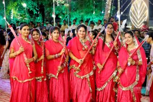 विशेष पोशाक में गरबा नृत्य करने पर 33 माताओं व बहिनों को तलवार भेंट कर किया सम्मानित