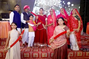 नवरात्र महोत्सव में अन्तिम पांच दिन लगातार रंग-बिरंगी पोशाकें पहनकर कर आकर्षक गरबा नृत्य करने पर भामाशाह परिवार द्वारा सम्मानित हुई 33 माताओं-बहिनों में कोमल हीरागर खाडियावास,प्रमीली चित्तारा,निकीती गहलोत,निशा गहलोत,पुनम गहलोत,जिज्ञासा गहलोत,रेखा धोबी,सोनी पूजा बिशनगढ़ व सोनी दिवाली बिशनगढ़,तारा सोलंकी,सोनी अरुणा,कमला देवासी,पूजा घांची,कंचन रावल,भावना कुमावत,सोनू सोनी,चंचल माली,वर्षा कुमावत,माहेश्वरी राजपूत,पिंकी माली,रवीना राठौड़,धरमी घांची,फालगुणी देवी,चेतना घांची,पूनम सोनी,विनीता बोराणा,लता जीनगर,हीना माली, इन्द्रा परिहार,निरमा माली,हेमा गर्ग, पायल चौहान व पलक गोयल इत्यादि शामिल हैं।सभी ने कार्यक्रम में उपस्थित होकर गरबा नृत्य करने के साथ भेंट की गई तलवारें ग्रहण की।