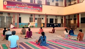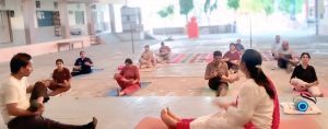 -योग प्रशिक्षिका अमिता अग्रवाल के मार्गदर्शन में सिखाई जा रही हैं योग क्रियाएं